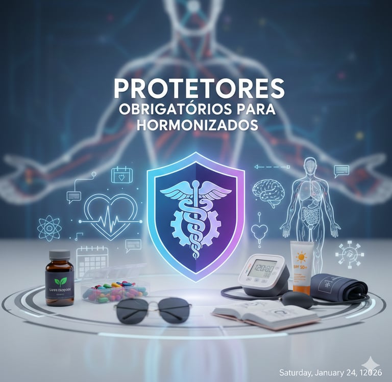 Em indivíduos hormonizados, o uso de protetores não deve ser encarado como algo opcional ou “corretivo”, mas como parte estrutural do protocolo. Doses suprafisiológicas de hormônios alteram de forma previsível a pressão arterial, a função endotelial, o perfil lipídico, a inflamação sistêmica, o estresse oxidativo e o equilíbrio hemostático. A ausência de medidas protetivas não impede resultados estéticos no curto prazo, mas aumenta de forma importante o risco cardiovascular, renal e metabólico no médio e longo prazo.